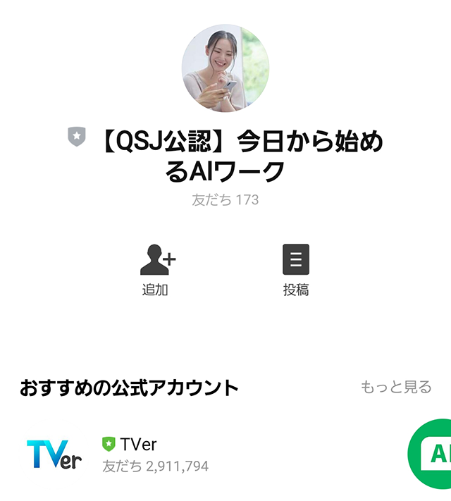 が表示されるので、「公認」という記載を確認して、友だち追加を済ませておきます。