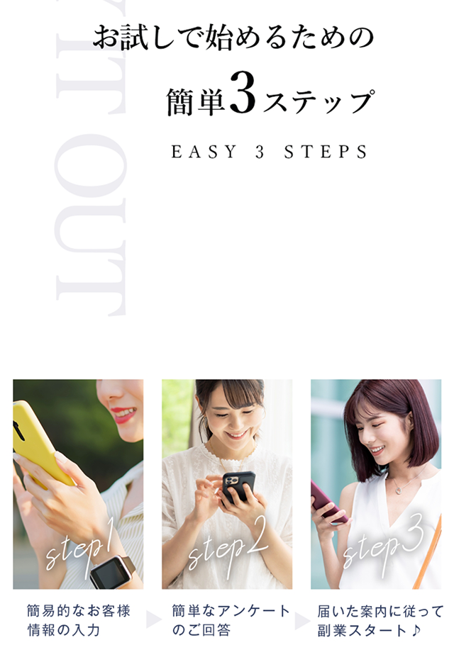 「登録料がかからない」「お試しで参加できる」「年収4桁に届きそう」